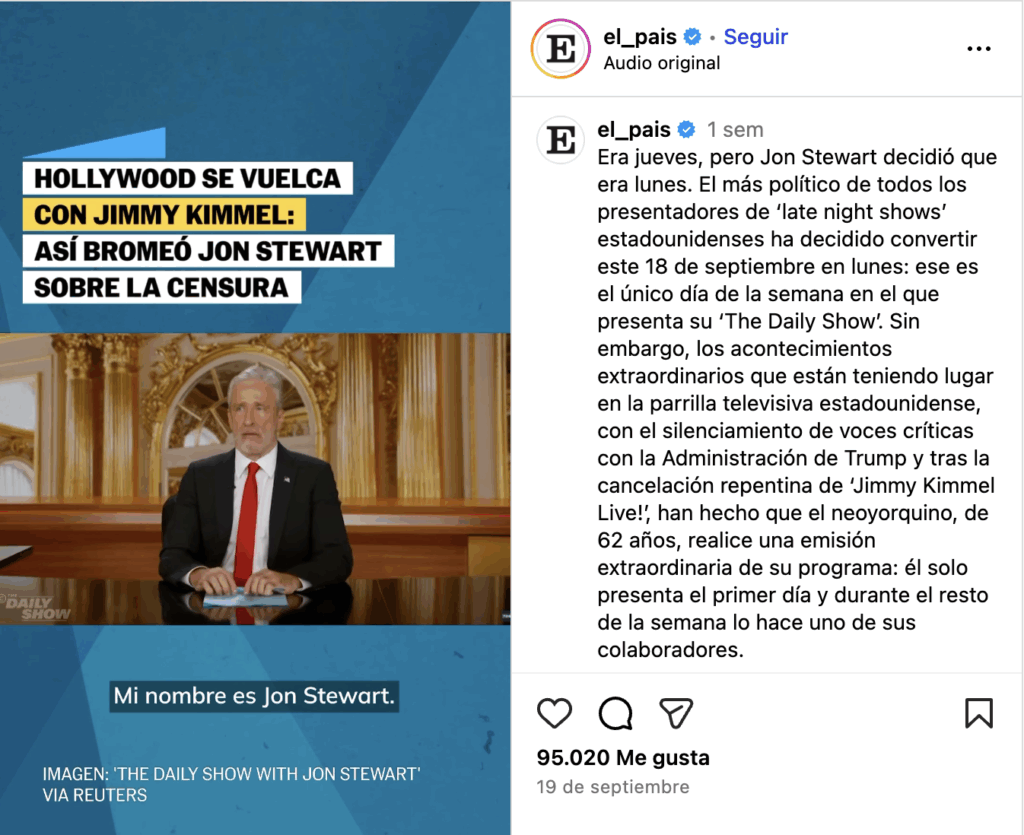 Y, finalmente, una semana después, Jimmy Kimmel volvió a la pantalla de ABC. Y habló de lo obvio : que el intento de Trump de silenciarlo obligó a millones de personas de todo el mundo a que vieran el programa. Como ustedes ahora.