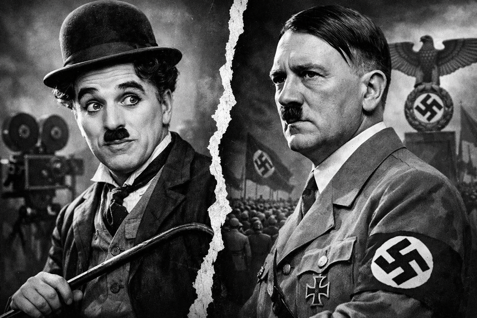 Chaplin interpretaba al mismo tiempo a Hynkel, el dictador de Tomainia, y a un humilde barbero judío. El parecido de ambos producía que, en un momento, intercambiaran roles. De esa confusión surgieron dos escenas memorables. En una de ellas, “el gran dictador” juega con el planeta tierra.